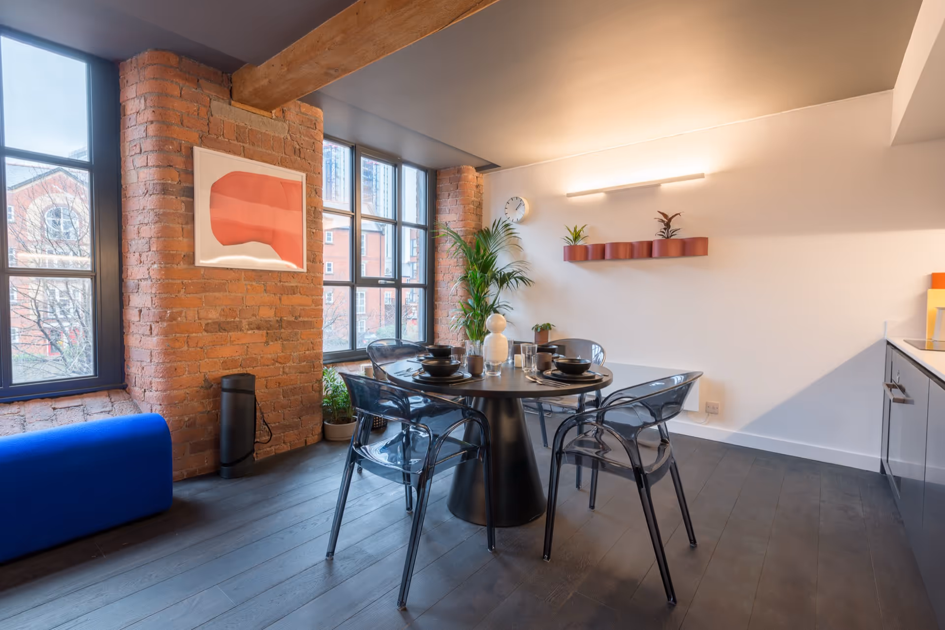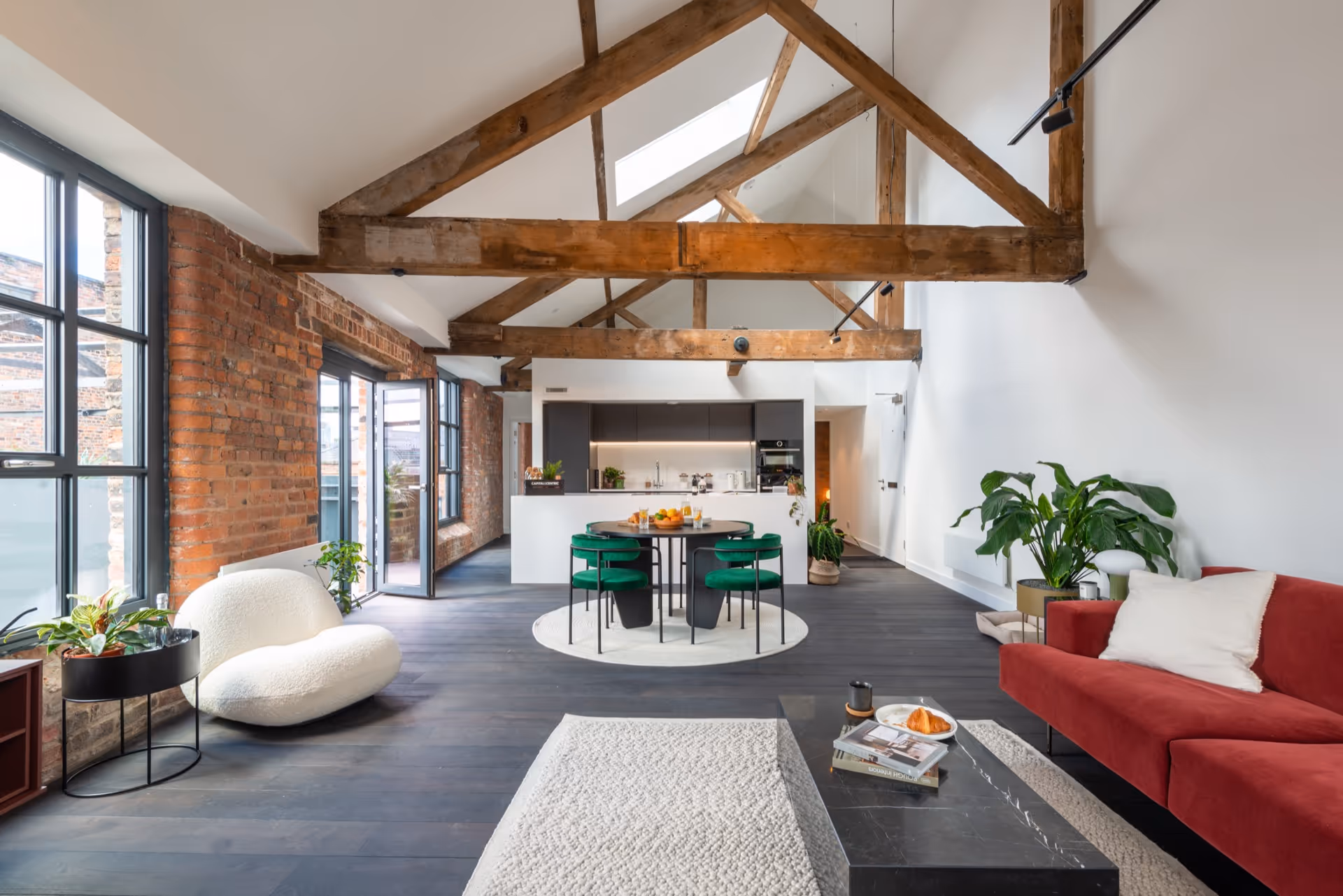 - 200-year-old mill with exposed brick, timber beams and huge windows