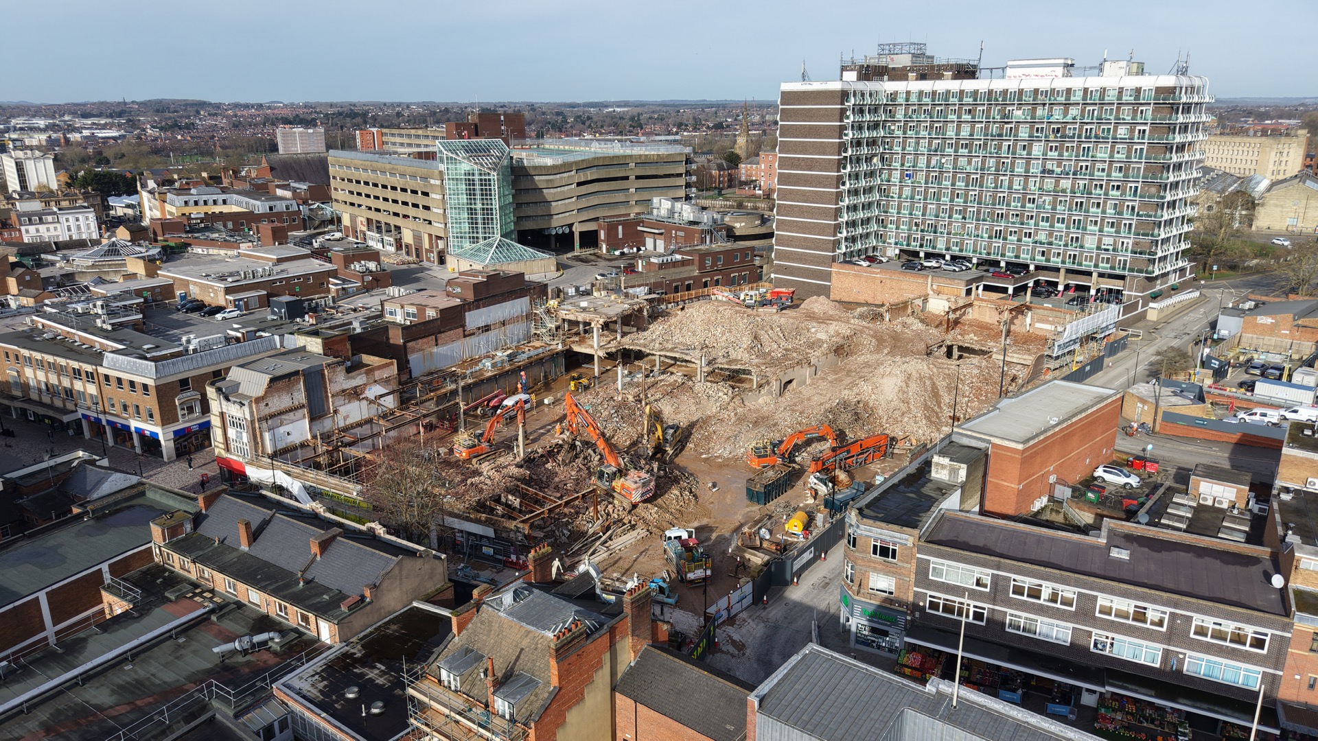 The first drone imagery and on-site progress of a major regeneration scheme in Northampton town centre have been unveiled, marking a significant milestone in the transformation of the former Marks & Spencer and BHS sites along Abington Street.