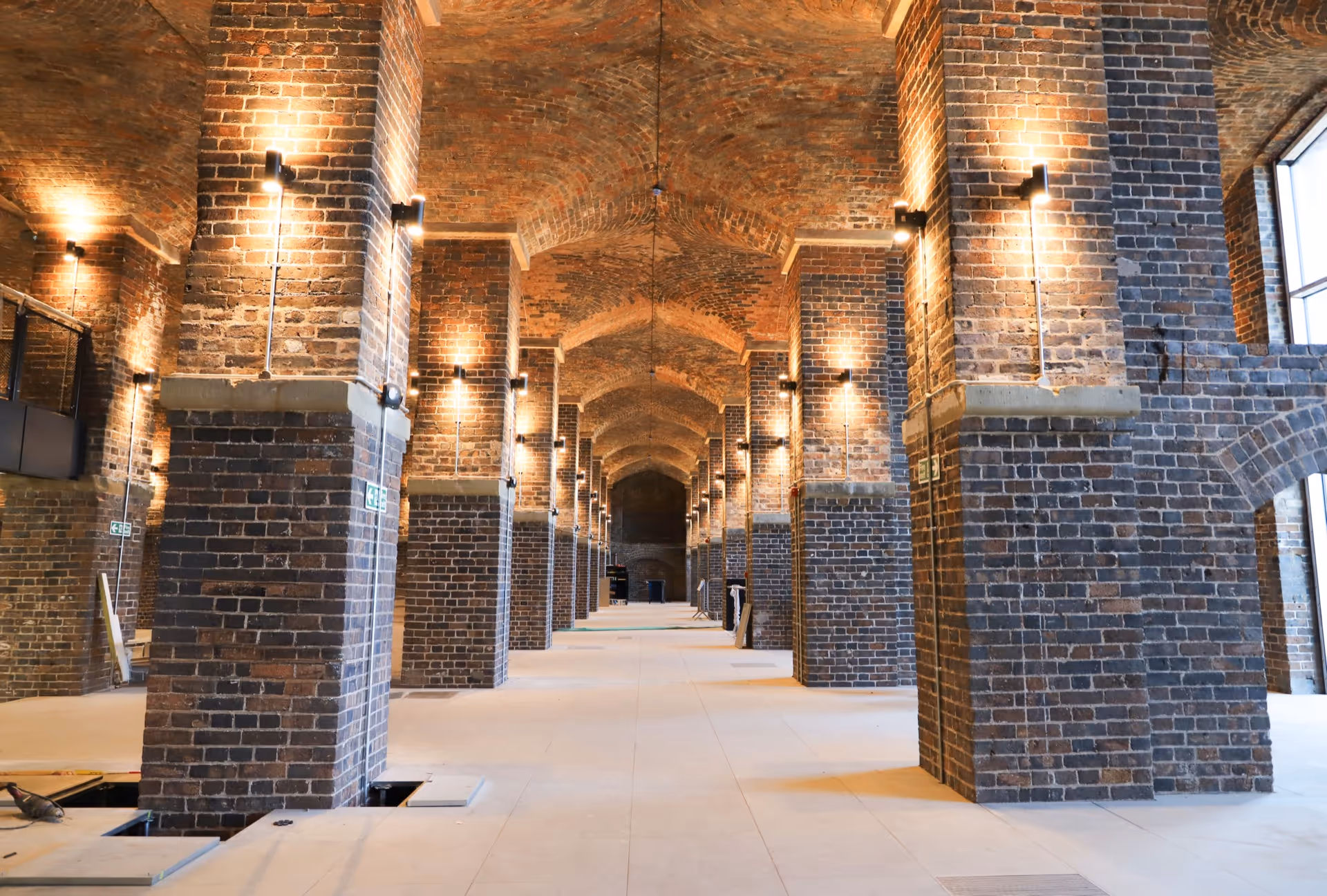 Goods Yard began life as a three-storey warehouse, craning goods between the train line and canal with a vaulted basement below.