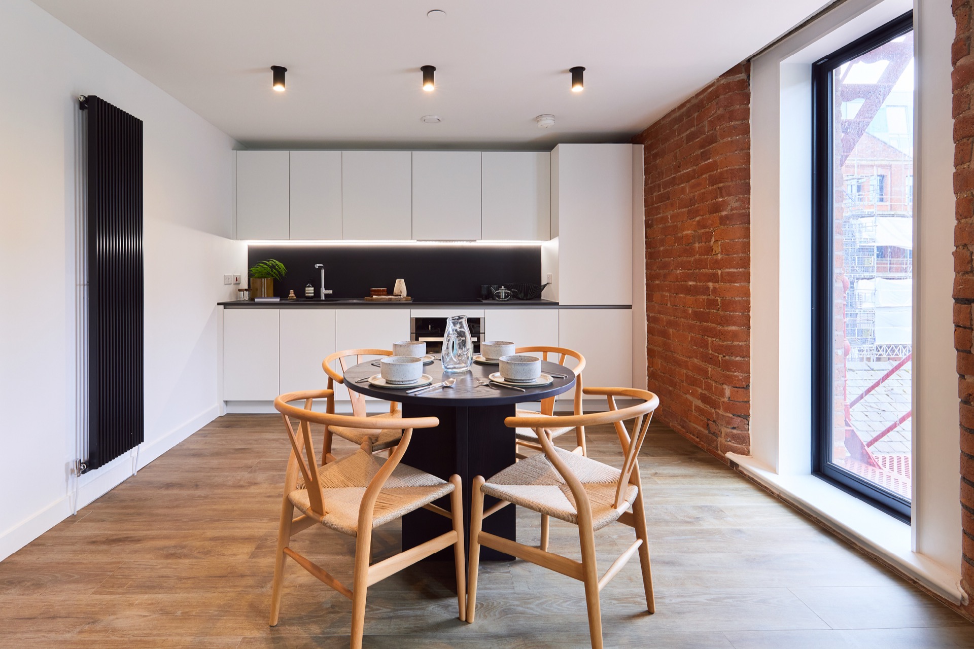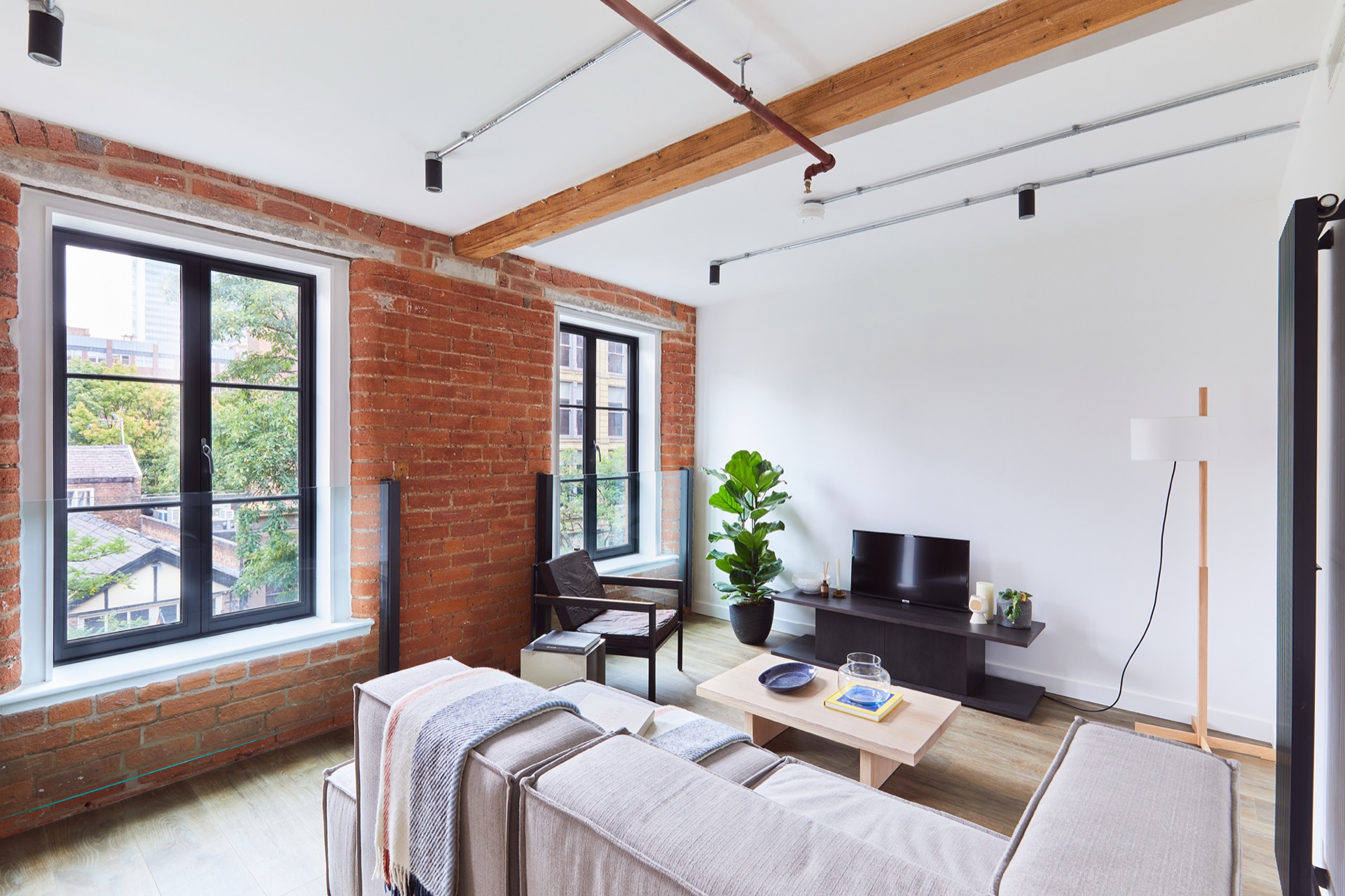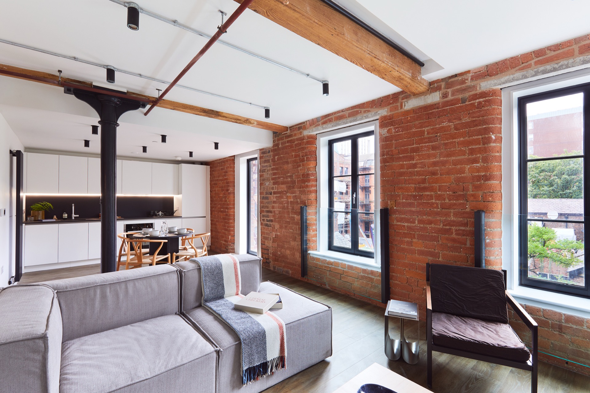 Rental apartments within a red brick, Grade II-listed warehouse, where industrial heritage meets modern design in the centre of Manchester.